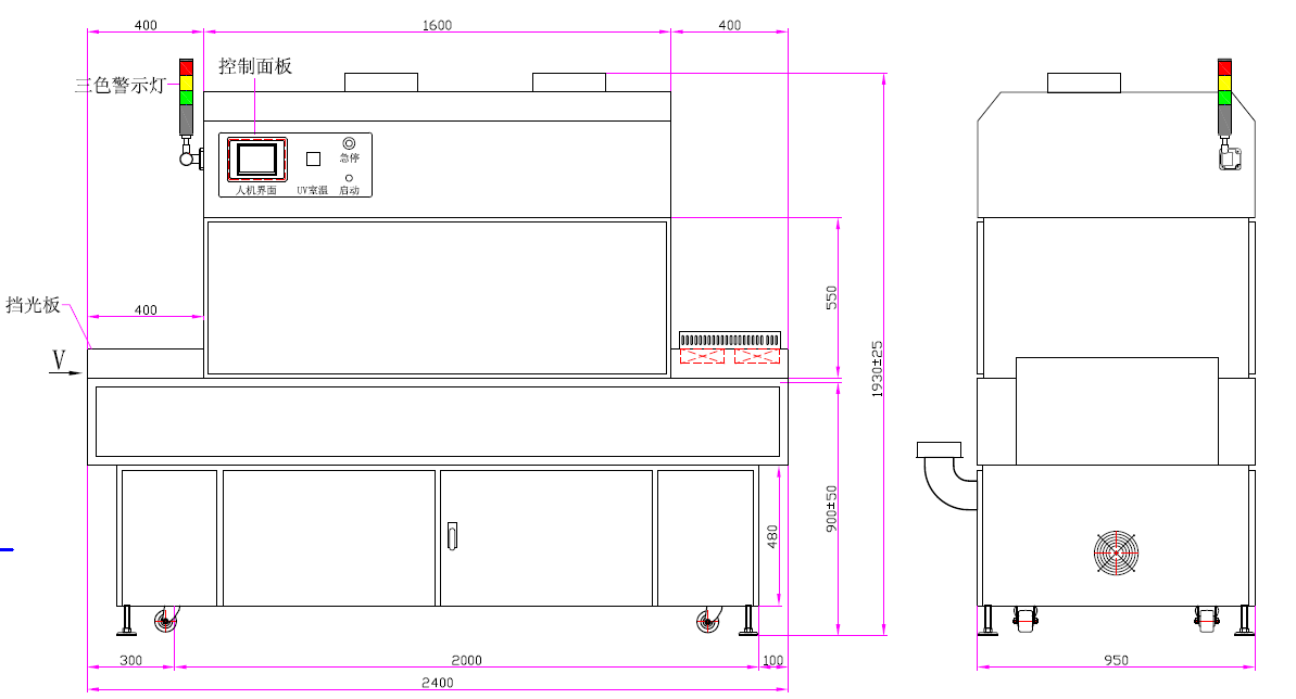 4、UV燈總長(zhǎng):3.0kw:400mm、6kw:620mm