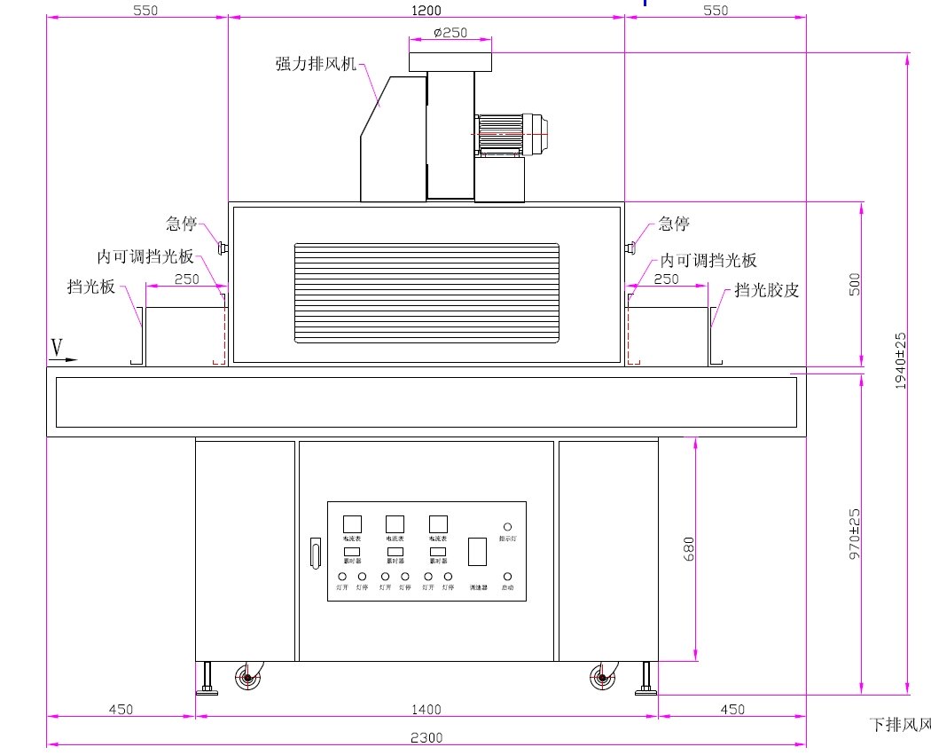 二、UV燈總長(zhǎng):500mm,弧長(zhǎng):400mm