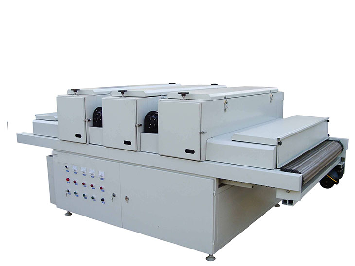 高壓汞燈。該燈管光變普范圍在350 nm-450 nm之間,主峰值為365 nm,采用進(jìn)口石英管材及鎢鉬材料,用料好、強度高、壽命長,燈罩與工作面140-180mm高度范圍可調(diào),提高了固化質(zhì)量,并可全光或半光工作。輸送部分采用輥筒式輸送設(shè)計,不易變形,運送物料更加平穩(wěn),工作中無需調(diào)整,沒有噪音,改善了由于輸送帶跑偏而產(chǎn)生的不便維修很方便。配置大流量排風(fēng)系統(tǒng),散熱效果好,確保箱體內(nèi)的溫度始終在標(biāo)準(zhǔn)值范圍內(nèi),使